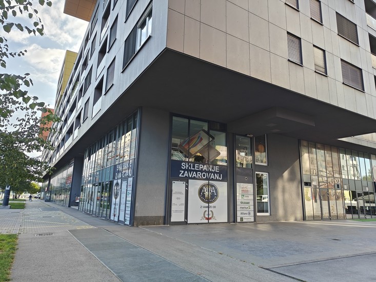 Pisarna se nahaja v pritličnih prostorih večstanovanjske zgradbe, nasproti vhoda v trgovski center Aleja.